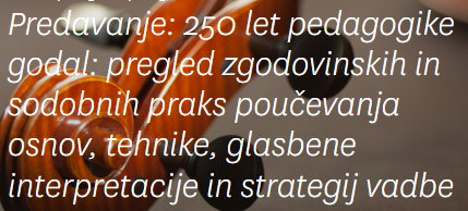 Predavanje ponuja celovit pregled 250 let pedagogike godal za violino in violo in je še posebej priporočljivo za vse godalne pedagoge ter je za vse člane ESTA Slovenije brezplačno.